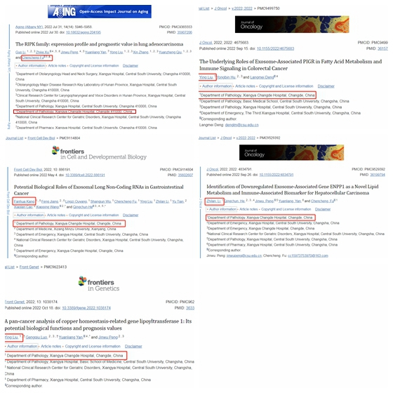 科研成果方面,5年多来,在多项各级科研基金项目资助下,团队成员以第一或通讯作者(含并列)共发表SCI科研论文29篇,绝大部分论文发表在国际顶级或知名期刊。其中9篇以湘雅常德医院病理科作为作者第1署名单位,20篇以湘雅常德医院病理科作为作者第2署名单位;含Q1区16篇,Q2区12篇;影响因子(IF)﹥5论文20篇,单篇最高IF为9.876(Q1,Oncogene,2023年3月在线发表)。业已发表的论文中,包括2019年度发表了我院首篇以湘雅常德医院为署名单位的SCI论文(第一作者,JCR Q2区,为期刊封面论文);2021年度发表了我院首篇以湘雅常德医院为第一署名单位的SCI论文(第一作者和通讯作者,JCR Q2区)。另获得国家发明专利授权3项(第一发明人)。