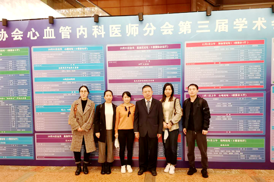 2020月31日-11月1日,由湖南省医师协会心血管内科医师分会主办的“2020湖南省医师协会心血管内科医师分会第三届学术会议”在长沙盛大召开。来自全国及省内心血管领域及相关领域专家,为参会同道带来学术盛宴。大会通过学术报告、病例讨论等方式,与心血管领域同道们积极交流。 湘雅常德医院心血管内科由彭道地主任和范爱德主任医师率科室医生、心电图室技师参加此次会议,并且彭道地主任担任会议中相关学术专题的主持人。 本次大会,湘雅常德医院心血管内科积极参与冠心病、心内电生理、疑难病例讨论等新进展和热点问题的专题学术讲座,会场学术交流气氛热烈。湖南省医师协会为范爱德主任医师颁发“抗疫英雄”荣誉证书。期间,大会授牌成立了湖南省心电图及心律失常诊断联盟,心电图室黄伊濛技师受邀成为联盟委员。