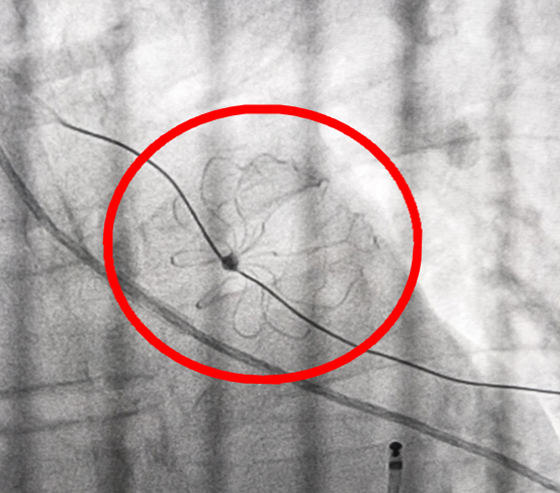 4月11日,在介入导管室、心胸外科、放射科等多学科联合协作下,手术如期进行。术中,造影显示患者左心耳远端分布发达的梳状肌呈菜花状,极易造成血流瘀滞,继而形成血栓引发脑卒中等栓塞的危险。彭道地副教授团队首先为患者成功实施射频消融术,遂即将一枚直径3.3厘米的“左心耳封堵伞”植入左心耳,成功封堵左心耳开口,手术过程顺利。术后,周先生恢复窦性心律,继续规范药物治疗,目前恢复良好。