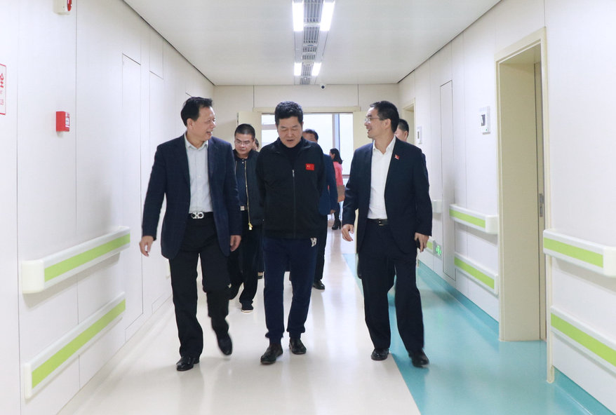 莫宏光主任及李长春主任一行先后到了医院门诊大厅、住院楼等建设现场实地考察。调研期间,两位主任认真听取了曾克非书记关于湘雅常德医院工程进度、专家队伍及开业筹备等方面的工作汇报。