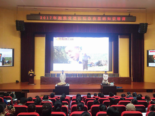 湘雅常德医院急诊科主任何青春作“心肺复苏急救知识”的专题讲座,不仅生动形象介绍了成人急救的生命链,从心肺复苏的理念、实施步骤、到除颤仪的使用等,都进行了详细的讲解,并对相关救护要领进行了现场示范。何青春主任指出,每一位医护人员都要有成为急救知识传播者的责任感和使命感。