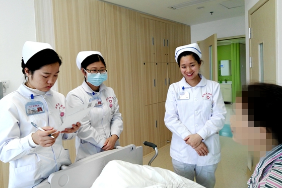 陈阿姨进入病房体验到“VIP”待遇,李姗护士长带领责任护士、当班护士亲迎,扶入病房,亲切的床旁交代住院相关注意事项,李姗护士长说道“病人的笑容是我们最希望留住的,我们要以最优质的护理来为患者服务!”