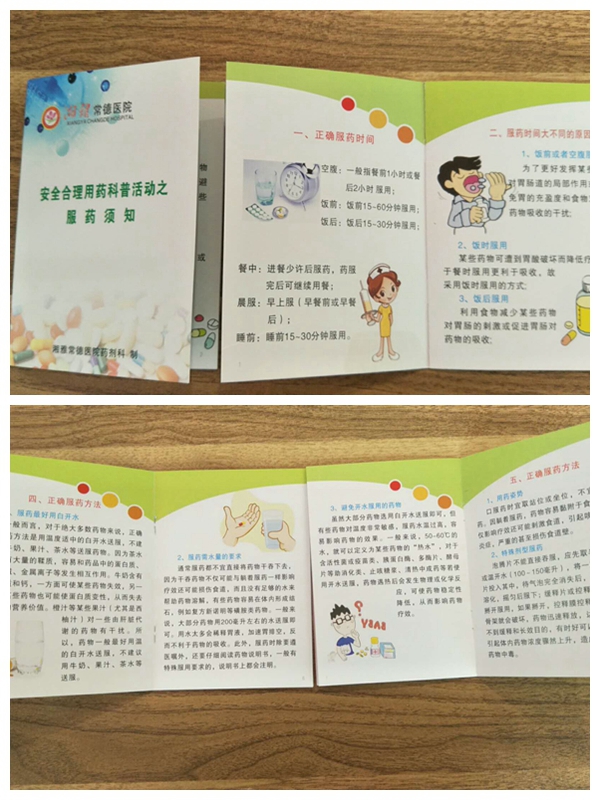 据悉,湘雅常德医院药剂科全体临床药师参与并开展的“安全合理用药科普活动系列二之服药须知”的宣传活动,不仅对正确服药时间、服药间隔、服药方式、服药用水等问题进行系统的阐述解释,并且对服药时的各种注意事项亦有专业的提示说明。此外,该活动不但采取现场咨询、发放全新专业制作的“漫画+文字”的宣传小册、摆置相关落地展示牌等形式进行宣传,而且相关内容已同期在湘雅常德医院公众号进行的介绍推送。据悉,由湘雅常德医院药剂科举办并开展的“安全合理用药科普活动”仍会长期推行,各大科普系列亦将配套陆续进行。切实提高“以患者为中心”的药学服务,为实现湘雅常德医院 “服务常德、成为泛湘西北区域医疗中心”的目标不懈奋斗。