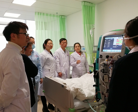 1月8日,湘雅常德医院血液科收治一名血钾高达8.1mmol/l的病人饶某,水肿明显。患者肾功能不全急性加重,加之高血钾,随时可能至心脏骤停,情况十分危险。血液净化中心护士长孙咏梅和护士邓思梦接到的通知后第一时间赶去给病人降钾。