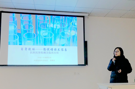 为增进临床科室与检验科的沟通交流,提高临床相关工作人员对自身免疫性疾病的认识,1月11日晚,我院检验科在医务部与风湿免疫科协助下,于科教楼一楼会议室举行了《抗中性粒细胞胞浆抗体ANCA、抗核抗体检测的临床应用》专题讲座,邀请中南大学湘雅医院风湿免疫科主治医师贺维佳等为我院临床相关工作人员做了详细的专题介绍。