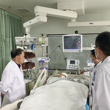 此次查房以一位脑出血术后患者为中心,经过详细了解病情后,徐教授指示,要着重围绕该患者的既往史(主要是高血压和肾病)来治疗,合理准确的使用控制血压的药物。其次,还提到了重症医学科治疗的十一项工作,包括F:营养支持,A:镇静,S:镇痛,T:血栓的预防,H:头高位30°,U:溃疡的预防,G:血糖的控制,S:自主呼吸实验和尽早脱机拔管,B:液体平衡,I:尽早拔出导管,D:抗生素降阶梯等等。还指出患者肺部感染可能与反流有关,可以采用体位引流的方法,包括正侧卧位和俯卧位。各位在场的医护人员都感觉受益匪浅。