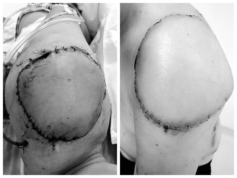 术后病人的肩部创面修复良好