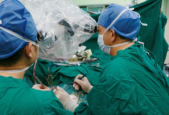 2月23日,袁贤瑞教授带领其团队为翦先生精准切除了肿瘤。术中见病变位于右额叶内侧,肿瘤大小约5×4×5cm,灰红色,周围脑组织水肿,肿瘤深达内囊。7个小时,袁贤瑞教授利用先进技术的帮助及个人经验及手术技巧在显微镜下荧光显影全切肿瘤,顺利完成手术。