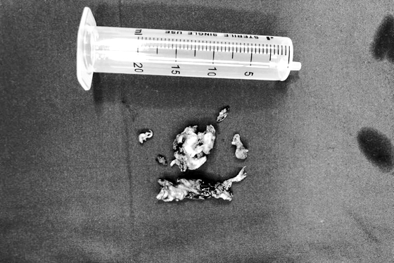 初八上午查房,骨科主任张朝跃教授高度关注患者病情,并组织全科室医生针对患者病情进行讨论,讨论后一致认为患者有行急诊手术指征,遂当机立断,决定下午安排手术治疗,解决患者大小便功能障碍的问题,否则后果不堪设想。下午三点,在骨科主任张朝跃教授的指导下,吴文欣副主任医师为患者实施了L4\5椎间盘突出髓核摘除+椎管减压+神经根松解术。手术顺利,术中可见L4\5椎间盘髓核脱出游离至L5椎体后方,并压迫相应神经根及硬膜囊,导致患者下肢麻木及大小便功能障碍。术中发现神经根及硬膜囊卡压严重,活动度消失,取出脱出髓核组织约30g。