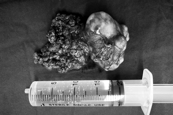 朱大伯平日烟不离手,每天小酌二两小酒,生活也过的潇洒自在。三年前,发现右侧耳下有一个“硬币”大小肿物,也没太在意。但近半年来,肿物已疯长到“鸡蛋”大小。