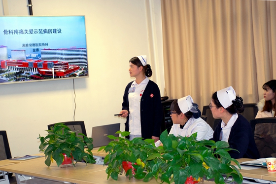 骨科为了让病人不再“忍痛” ,使患者在无痛或尽可能轻的痛苦中获得治疗和康复锻炼,以改善患肢功能,提高患者生活质量。2018年3月7日15:00在骨科主任张朝跃及护士长金惠的组织下,全科医护人员在骨科示教室进行“疼痛关爱示范病房建设”的管理学习并宣布“骨科疼痛关爱示范病房建设”正式拉开帷幕。