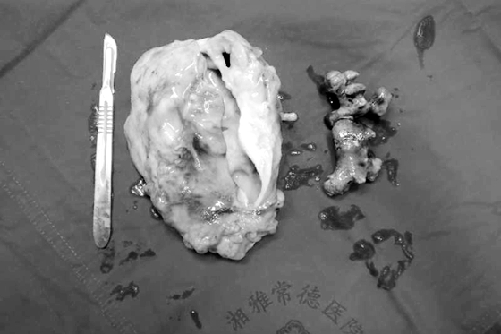 经过系统检查后发现“右肾巨大结石右肾重度积水并化脓”。因结石长期未做处理,导致右肾功能已完全丧失,已无保留价值并且化脓感染引起患者重度贫血、右肾周围渗出粘连等多种并发症。