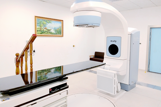 放射治疗简称放疗,是一种利用各种射线,如X线、60Co射线、电子加速器之高能X线或高能电子束射线等直接照射癌瘤,使癌细胞损伤、退化、萎缩直至死亡。放射治疗的常用设备有:X治疗机、60Co治疗机、医用加速器、模拟定位机、近距离后装治疗机及放疗计划系统。现我院肿瘤科放射治疗中心的放疗设备有Trilogy直线加速器、Discovery CT590RT 、Acuity模拟定位机 及GammaMed Plus iX 多通道三维后装治疗机