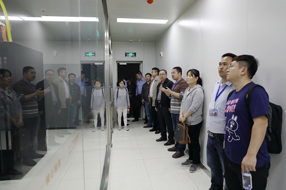 参观团来到网络信息中心参观了核心机房,网络信息中心殷化镔详细的介绍了机房严谨的布局、以及先进的桌面虚拟化技术。随后网络信息中心胡芳华主任亲自给参观团队介绍了我院信息化建设历程。
