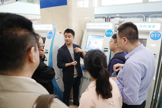 在网络信息中心成员的带领下,参观团队移步前往门诊大楼,仔细观摩了我院药房、骨科门诊、检验科等,对于我院信息化建设给予了极大的赞赏。