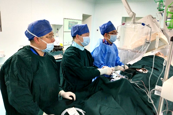 家人发现熊爷爷的异常后,随即带他去常德某医院检查后,诊断为“急性心肌梗死”随即住院治疗。但是由于老人年龄太大,加之消化道出血,医院不敢给老人做手术,住院期间一直采取保守药物治疗,医生劝导熊爷爷回家保养,老人无奈之下只好出院。 回家后,熊爷爷胸痛日益加重,稍微一活动就憋闷得难受。家人特地带熊爷爷来到湘雅常德医院心血管内科就诊,医生诊断:冠心病 陈旧性前壁下壁心肌梗死 不稳定性心绞痛 心功能Ⅳ级;肺部感染;胸腔积液。 目前熊爷爷的心绞痛为急性心肌梗死后心绞痛,最佳的治疗方案仍是介入手术开通血管,可老爷子91岁的高龄让常德医院都望而却步,这个手术,做,还是不做,难题赤裸裸地摆在了心内科主任彭道地教授及范爱德副主任的面前。 做,风险毫无疑问。目前药物治疗效果不佳,可是手术不做,熊爷爷的生命随时可能终止。医院在与患者家属多次交流后,家属决定“搏一把”。