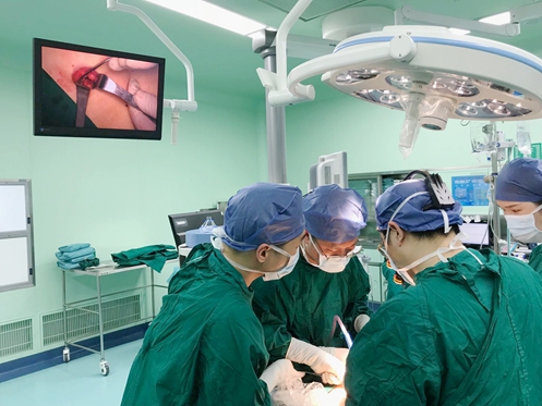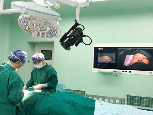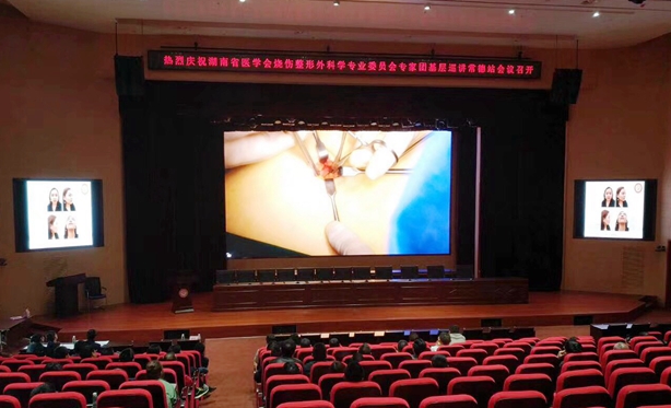 下午一点半开始,湘雅医院专家演示了本次大会的两场眼鼻整形手术,同时湘雅常德医院学术报告厅三块大屏同时开始转播。