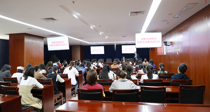 4月10日,湘雅常德医院召开第一次核算员培训会议,医院副院长邓天亮出席会议,财务部主任欧树文担任培训会主讲人。医院各科室核算员悉数参会。