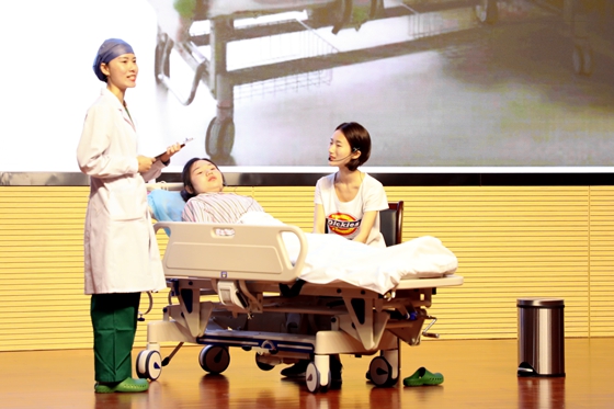5月3日,湘雅常德医院工会和护理部联合举办了“5.12”国际护士节系列活动——健康教育情景剧竞赛。 湘雅常德医院党委副书记倪众慧,副院长沙新平、肖目张,纪委书记胡爱军,工会主席黄永清,工会副主席汤爱国以及护理部、人力资源部、医务部、后勤保障部等职能科室负责人出席此次活动并担任评委。 比赛中,各代表队各展风采,大家根据平时与患者所接触的工作情景,护士们自编自演《胰岛素笔注射的宣教》、《听我说(消化道出血病人的健康教育)》、《舞动奇迹-PD患者的梦》等节目。 节目内容涵盖入院宣教、出院宣教、术前访视、专科宣教指导等,贯穿护士走姿、站姿、坐姿、持病历夹、端盘和推车等规范动作的表演展示,内容丰富,形式多样。充分展示出“白衣天使”们良好的精神风貌和护士的礼仪风采,展示了娴熟的专业技能和良好的沟通技巧,体现了护士始终以爱心、耐心、细心、责任心服务于每一位病人的优质护理服务理念。 经过近四个小时的竞赛,经评委综合评判,《早产儿的爱》夺得一等奖,《舞动奇迹-PD患者的梦》和《护士,没那么简单》获得二等奖,《雾化,您真的做对了吗》、《不忘初心,砥砺前行(高热惊厥的护理宣教)》、《手术室通关秘籍》荣获三等奖,《胰岛素笔注射的宣教》等13个节目分别获得最佳组织奖、最佳魅力奖、最佳风采奖、最佳组合奖。 据护理部主任冯梅介绍:本次活动旨在通过开展健康教育情景剧竞赛,展现医院护理人员的青春风采和精神风貌;增强医院护理人员之间的凝聚力,提高护士对患者实施健康教育的能力,规范临床护理对专科疾病、常见检查、用药指导、手术前后护理及康复保健等健康宣教知识要点,以达到良好宣教效果,为患者提供优质护理服务。 与会领导对此次活动表示充分肯定。院领导表示:比赛以情景剧形式进行,形式新颖、既有趣,又有教育意义,不仅丰富了职工的业余生活也同时提高职工的专业素质及集体凝聚力,同时也希望工会以后积极开展这样的活动来增强职工的参与度与幸福感!