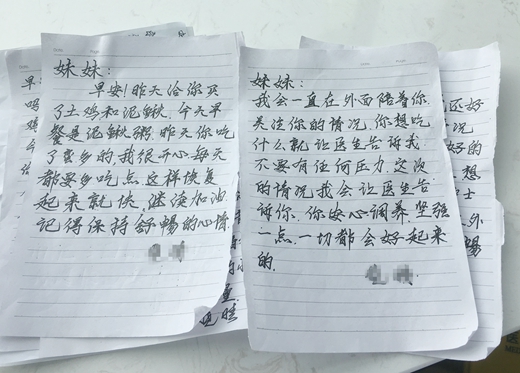 在ICU的日子里,最惦记小朱的还是她的爱人,他每日守在ICU的门口,用书信的方式将家中每天发生的大大小小的事情记录在纸上,托ICU的医生、护士带到小朱的床前。一开始是ICU的医护人员读给小朱听,本来虚弱的小朱听了爱人的亲切话语后,真的一点点在变好;后来是小朱自己看,阅读着爱人的只言片语,反复抚摩着爱人的笔迹,小朱的笑意漫过嘴角。她感激地对ICU里的医护人员说:“谢谢你们守着我,有人守护,我一定会好好活下去,快点好起来!”ICU的医护人员们更是欣慰听到病人如此充满生机的话语。