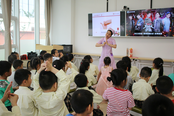 李爱连护士长为幼儿园小朋友授课
