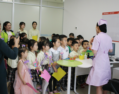 为更好的传承和发扬优良护理精神,激励护士更好的诠释“爱心、耐心、细心、责任心”的内涵,培养幼儿关心、尊重护士的情怀,以呼吁社会尊重和关心护士,值此5.12国际护士节来临之际,儿科门急诊携手蓓蕾幼儿园共同举办了幼儿进医院慰问白衣天使的“护士节”主题活动,此次活动共接待了该幼儿园大班组的30余人师生,活动期间,李爱连护士长为孩子们极富童趣的讲授了护士节的由来、教会了幼儿怎样正确洗手以及到医院的注意事项等幼儿自我保护和护理的知识,而后护士们带领幼儿们参观了儿科诊室,让幼儿了解看病的流程,减少幼儿看医生的恐惧感。最后,幼儿们为医护人员献上了鲜花和自己制作的贺卡作为礼物,送去最童真的祝福,医护人员们也深深的感受到了节日的温暖,活动现场十分温馨、热闹而又井然有序。