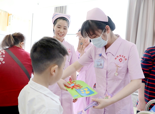 幼儿园小朋友向我院医护人员献上自己亲手制作的护士节礼物
