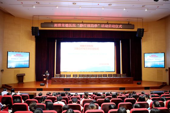 2018年5月29日晚,湘雅常德医院2018年“静疗规范季”启动仪式在学术报告厅举行,此次“静疗规范季”活动以“规范静脉治疗,保障患者安全”为主题,旨在规范我院静脉治疗操作技术,减少输液并发症,确保患者输液安全和医护人员职业安全,确保我院“规范、安全、温暖人心”的护理理念真正落到实处。