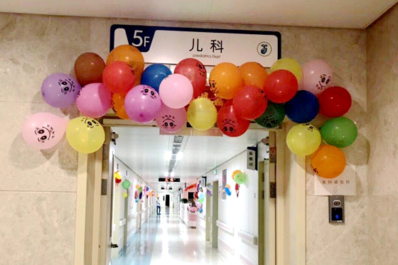 节日的前一天,病房护士就利用业余时间在护士长的领导下开始了病房的布置工作,吹气球、绑气球,整个病房围绕在气球的海洋里,温馨而充满童话色彩,让小朋友们不再惧怕医院,让他们能像在家里一样感受到温暖与幸福。