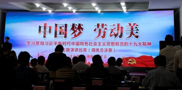 6月8日,由湖南省总工会主办的“中国梦·劳动美”——学习贯彻习近平新时代中国特色社会主义思想和党的十九大精神主题演讲比赛(湖南总决赛)在湖南省总工会隆重开幕。此次主题演讲活动旨在深入学习贯彻落实习近平新时代中国特色社会主义思想和党的十九大精神,大力颂扬中国特色社会主义建设取得的伟大成就,积极引导广大职工更加紧密地团结在以习近平同志为核心的党中央周围,为决胜全面建成小康社会,夺取新时代中国特色社会主义伟大胜利贡献智慧和力量。