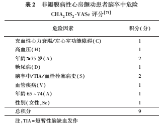 CHA2DS2-VASc评分对房颤患者进行脑卒中危险评估有重要指导作用。CHA2DS2-VASc评分为0分者年卒中发生率为0%,2分为1.3%,4分为4.0%,6分为9.8%。