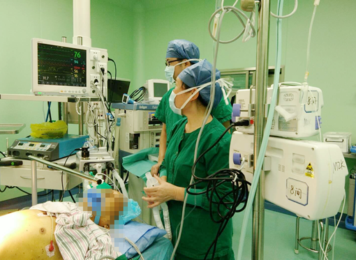 在王教授的指导下,麻醉手术部的李维东副主任医师带领陈艳涛医生进行硬膜外穿刺、全身麻醉及动脉穿刺均非常顺利,术中王云姣教授一直严密观察患者生命体征的变化,及时调整麻醉机参数及药物剂量,术中患者生命体征一直比较平稳。手术历时2个多小时顺利完成,手术结束后不到5分钟,患者已有自主呼吸,呼唤患者姓名,唐嗲嗲立即睁眼。脱呼吸机观察5分钟左右,唐嗲嗲各项体征都已恢复,王教授指示予以拔除气管导管,整个过程非常顺利。考虑到唐嗲嗲高龄,合并严重的肺功能障碍,为了万无一失,王教授建议将唐嗲嗲送至ICU严密观察一晚。