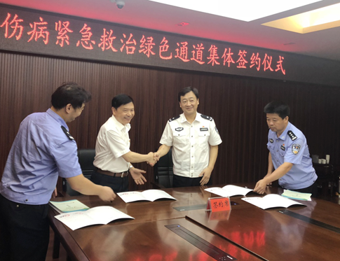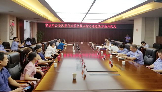 7月5号下午,常德市公安民警伤病紧急救治绿色通道集体签约仪式在常德市公安局办公大楼会议室举行。常德市政府副市长、市公安局党委书记、局长李忠,常德市卫计委副主任符中智在仪式上作重要讲话。市公安局党委副书记、常务副局长胡文担任仪式主持。