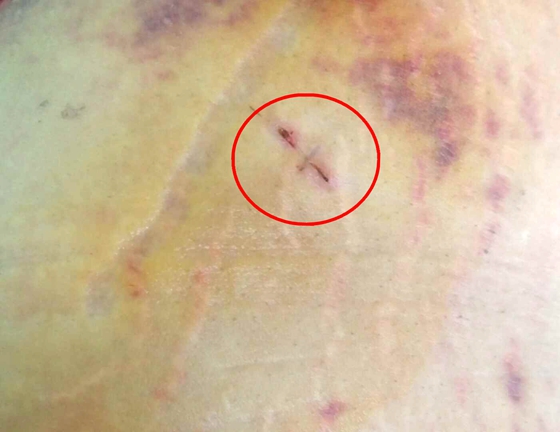 7月12日,在张朝跃教授指导下,邹敏医师主刀、唐初医师等人的协助下,手术顺利完成,臀部皮肤切口仅为5mm,用创伤最小的手术方式为患者解决极大的痛苦。术后第二天,患者顺利下床并能缓慢进行双足并拢下蹲、跷二郎腿等一系列动作。