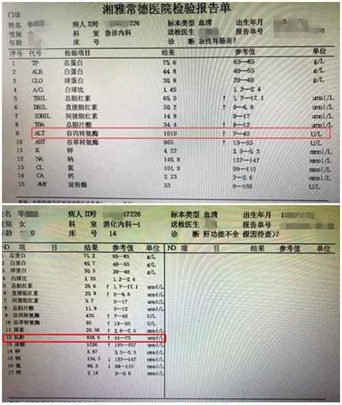 24岁——花信年华,正当妙龄的华女士却因“发热、腹胀、呕吐”入住湘雅常德医院消化内科,入院后完善相关化验发现,华女士的谷丙转氨酶超过正常值近30倍,肌酐超过正常值近20倍,诊断考虑为“肝肾功能不全”。