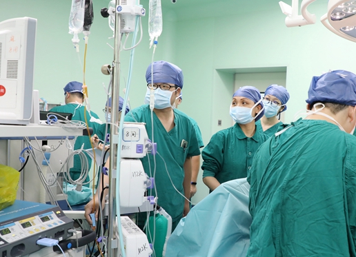 孙志华主任(右三)与其团队时刻关注病人变化