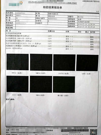 一周后患者的自身免疫性脑炎相关抗体检查结果回报血清及脑脊液抗LGI1抗体阳性,确诊为AE(抗LGI1脑炎),与临床诊疗结果一致。刘女士及家属对湘雅常德医院的治疗、护理给予了高度肯定。