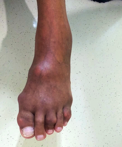一开始,刘大爷只是偶尔脚痛,1年仅出现2-3次,休息几天或者用“土方”也管用。后来这些方法都不起效了,发展到脚痛、手痛、膝盖痛,皮肤还又红又肿,手上、脚上开始长了大小不等的“小石头”。虽口服一些药物后,疼痛暂时得到控制,但好景不长,没过多久,疼痛又持续出现且“小石头”还在不断长大,疼痛的时间也越来越长,刘大爷不得不放弃劳作,长时间在家卧床休养。家人也开始寻求各种各样的“土方”来治疗,但收效甚微。