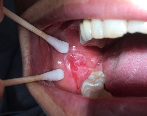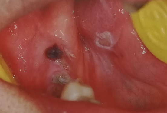 刘女士口内溃疡长期不愈1年余,溃疡范围时大时小,却一直未能愈合。刘女士曾在当地诊所诊治,也吃过不少副中药,均未让溃疡好转。不得已,刘女士来到湘雅常德医院口腔科。医生查看了陈女士的口内情况,进行触诊检查后,建议陈女士切取右脸颊口腔内的一小块组织去做病理检查。1周后,陈女士拿到病理检查结果,显示为:右颊高分化鳞癌。原来,刘女士口中久治不愈的溃疡实际上是一种癌性溃疡。