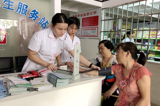 急诊科黎玭为社区居民测量血压