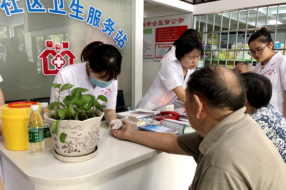 健康管理中心向薇为社区居民测血糖