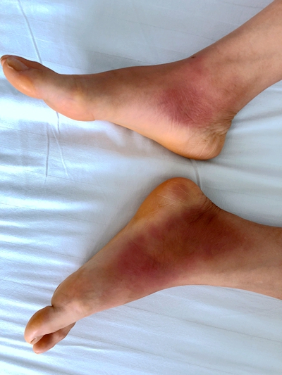 后来这“红坨”越来越大,一碰就痛的厉害,膝盖、脚踝也痛的不行。钱女士在当地医院抽了血、做了检查,也没弄清原因,用了止痛的药,也不见效。 在当地医生的建议下,钱女士来到了湘雅常德医院继续求医。
