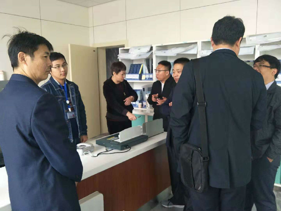 随后,在网络信息中心工程师的带领下,参观团第一站参观了我院体检中心,对于体检中心热情的服务态度表示了赞赏。接着前往门诊大楼,仔细观摩了我院药房、门诊诊室等科室的信息化建设情况,最后来到了住院楼,参观了护士站、医生办公室、病房等。