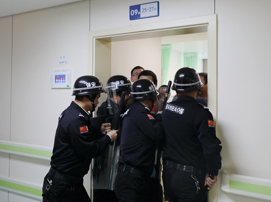 10月24日,湘雅常德医院医务部、后勤保障部联合柳叶湖派出于1号住院楼烧伤整形美容科举行了医疗突发事件应急演练。湘雅常德医院副院长邓天亮、肖目张,医务部黄炯主任,后勤保障部鲁晓琴主任,常德市公安局柳叶湖分局常务副局长徐文辉,柳叶湖派出所教导员周杰等领导一同参加了此次演练。