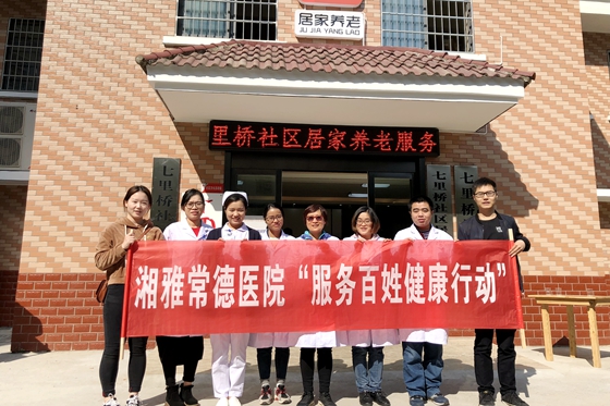 11月2日,由湘雅常德医院事业发展部组织,康复科吴映华护士长、中西医结合科郭超医师,风湿免疫科黄世红医师、张曼妮,药剂科熊亚群、陈友姣药师,事业发展部李紫微、袁羽清等8人组成的义诊服务团队,联合完美社区、七里桥社区,走进七里桥社区居家养老服务中心,共同为社区居民进行义诊服务。