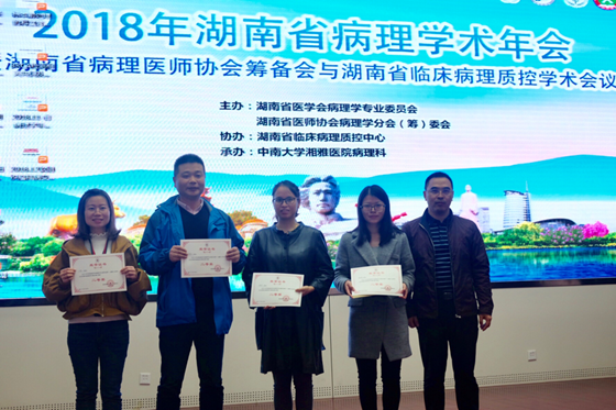 2018年度湖南省病理学术年会暨湖南省临床病理质控学术会议于11月30日-12月2日在中南大学湘雅医院隆重召开。本次学术会议邀请多位国内知名的病理专家进行了2个分会场的大型学术讲座,来自省内外的近六百余名病理工作者参加了此次盛会。会议期间还举办了首届湖南省青年病理医师诊断识图大赛、湖南省病理技师冰冻切片比赛以及首届湖南省病理青年教师讲课比赛。湘雅常德医院病理科积极参会、参赛,并在此次活动中斩获佳绩。
