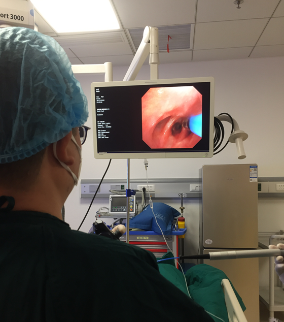 12月3日,呼吸内科支气管镜室来了一位支气管内膜结核的患者,患者是来自怀化市沅陵县的75岁蒋爷爷。因为支气管内膜结核导致支气管狭窄严重影响了日常生活,曾多次在长沙中南大学湘雅二医院进行冷冻治疗,久而久之,蒋爷爷的子女觉得去长沙路途遥远,看病成本颇高,遂计划换院治疗。而后,蒋爷爷了解到我院开展了此项目,便来此接受治疗。