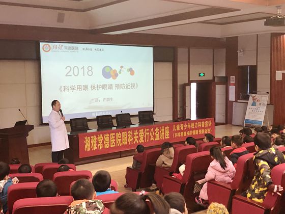 12月10日至11日。湘雅常德医院眼科积极响应习近平总书记关于学生近视问题所下发文件指示,开始对常德市范围内开展“展儿童青少年近视防控关爱行视力筛查及宣教活动”。我院眼科视光中心在柳叶湖管委会宣传教育局、柳叶湖一中领导的大力支持下赴柳叶湖一中开展“科学用眼 保护眼睛 预防近视”健康宣教活动。此次活动针对柳叶湖一中全体低年级小学生,活动主题为主讲人为湘雅常德医院眼科视光中心负责人许圳生。