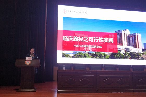 当日晚上,王庆红副教授在学术报告厅举行主题为《临床路径之可行性实践》的学术讲座。他从临床路径的起源、定义、作用、卫健委对医院临床路径的要求、湘雅医院临床路径的发展历程、实施瓶颈、发展契机、临床路径信息系统设计构想与创新、湘雅医院临床路径全院推行“五部曲”(信息系统、培训、指导、考核、督导)、湘雅医院取得的成效以及未来发展方向详细地介绍了临床路径如何开展及推广。