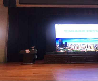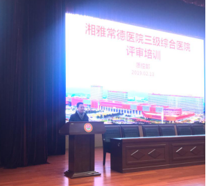 肖目张副院长代表院领导对石莲桂老师的到来表示热烈欢迎,感谢湘雅本部专家对我院评审工作的大力支持,希望全院通过本次培训能促进评审标准日常化,将日常工作规范化,大力提升医院的医疗服务水平。他强调,三级综合医院评审是医院工作的重中之重,全院职工应齐心协力,拧成一股绳,共同致力于医院建设为泛湘西北区域医疗中心。
